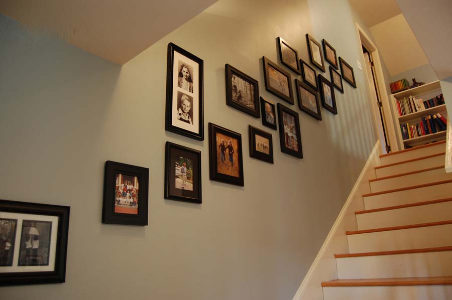 Bạn có thể trang trí tường bên cạnh cầu thang bằng những bức tranh. Bạn có thể treo bức tranh, hình ảnh hoặc gương trang trí để tạo ra một điểm nhấn thú vị và tạo sự chuyển đổi giữa các tầng.