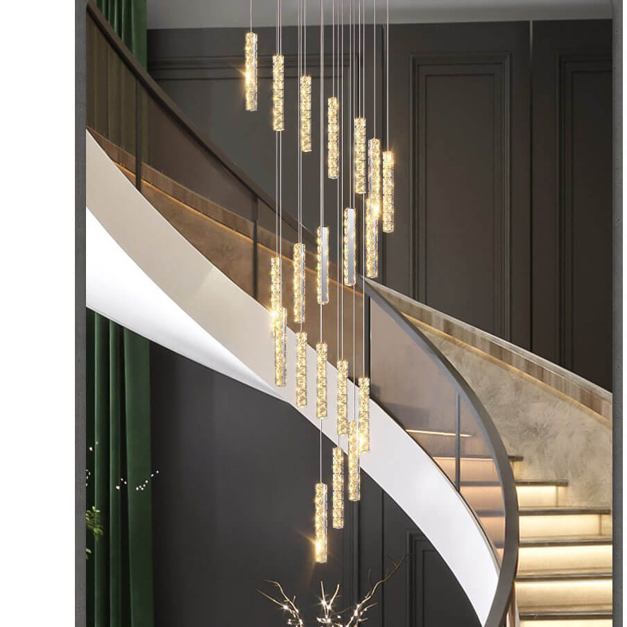 Đèn trang trí tạo điểm nhấn cho cầu thang, đặc biệt là đối với những nhà phố, biệt thự cao tầng thì bạn có thể treo các dây đèn nhỏ xuống từ trần và để vừa thắp sáng lối đi vừa mang đến sự lung linh, huyền ảo và sang trọng cho ngôi nhà.