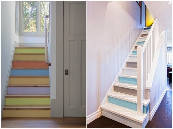 Một trong những cách đơn giản nhưng hiệu quả để giúp cầu thang trở nên đẹp hơn là là sơn màu sắc độc đáo trên các bậc thang. Bạn có thể sử dụng các gam màu tươi sáng hoặc kết hợp các màu phối hợp để tạo ra một bức tranh màu sắc ấn tượng trên cầu thang.