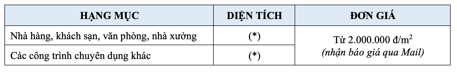 1. BẢNG ĐƠN GIÁ THI CÔNG XÂY DỰNG