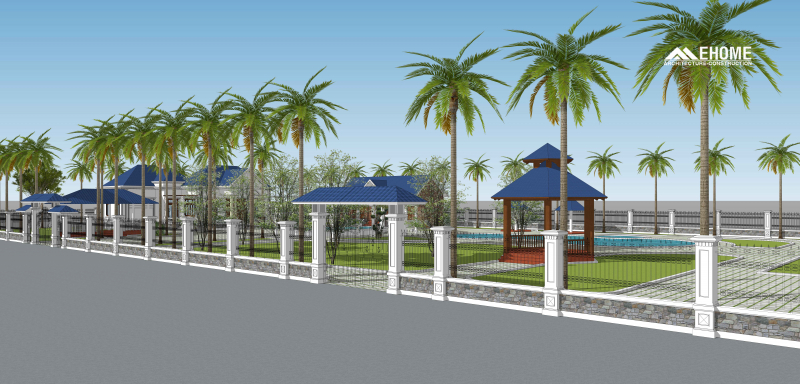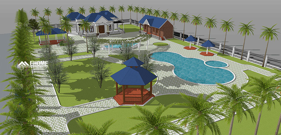 Qui mô: Biệt Thự Nhà Vườn 1 tầng ,3 phòng ngủ, hồ bơi, nhà khách