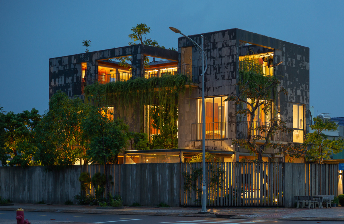 Và vào ban đêm, với sự khéo léo của kiến trúc sư khi bố trí hệ thống đèn diện cộng hưởng kiến trúc đã giúp biệt thự không gian mở lung linh vào ban đêm. Có thể thấy từ kiến trúc bên ngoài, thiên nhiên đã có sự hiện diện.