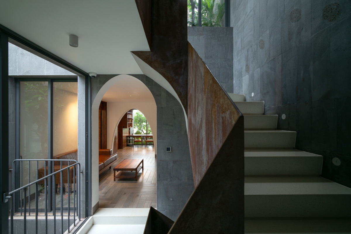 Biệt thự sử dụng thêm những vòm cong tạo nên điểm nhấn và tất nhiên không gian sinh hoạt chung và các phòng đều tạo những điểm nhìn, góc view ra thiên nhiên bên ngoài. Kết nối nhưng vẫn đảm bảo sự riêng tư.