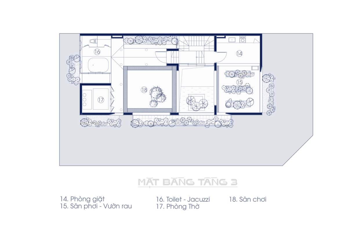 Mặt bằng tầng 3 biệt thự không gian mở