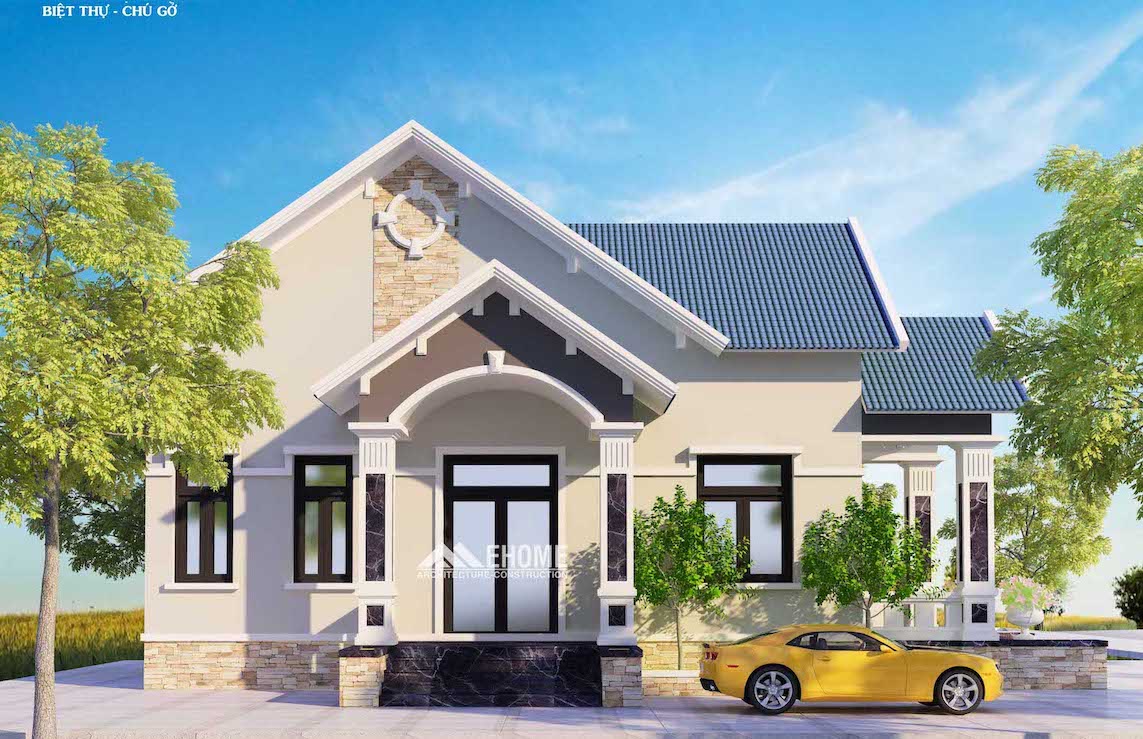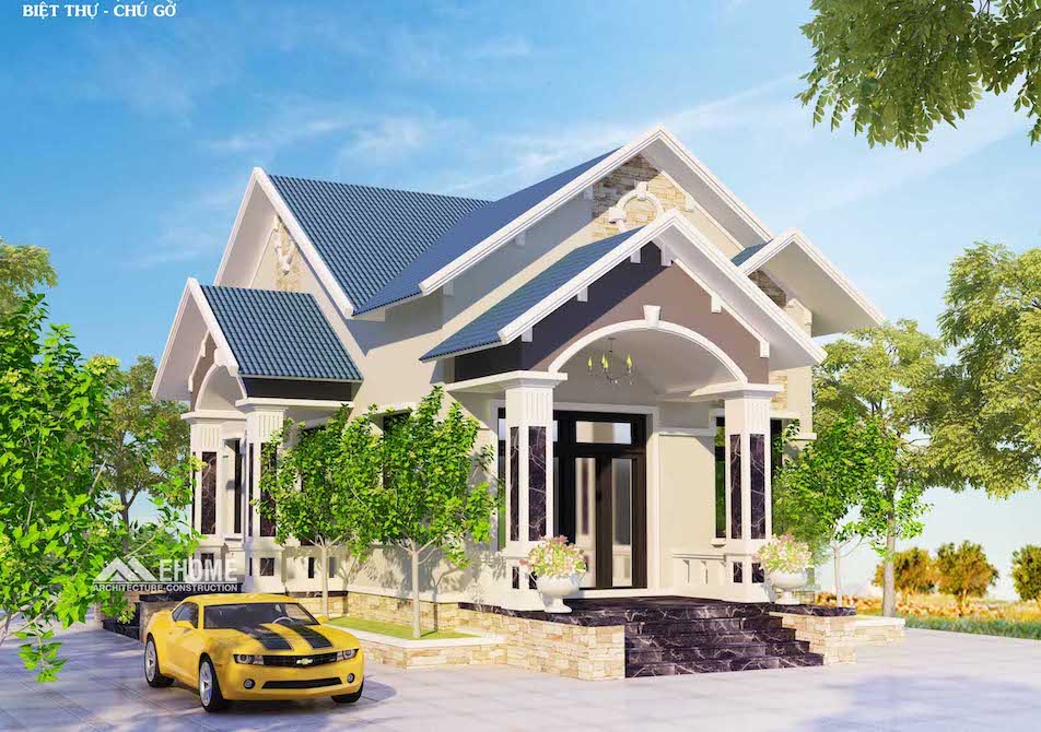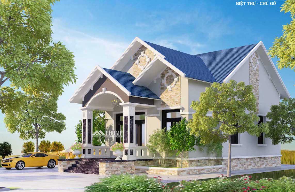 Yêu cầu của khách hàng khi trao đổi với Ehome Arch là kiểu nhà vườn hiện đại đường nét đơn giản, mái vòm cho sảnh đón, ngói màu xanh dương hợp với tuổi của Gia chủ, đồng thời kết cấu nội thất biệt thự đẹp hiện đại.