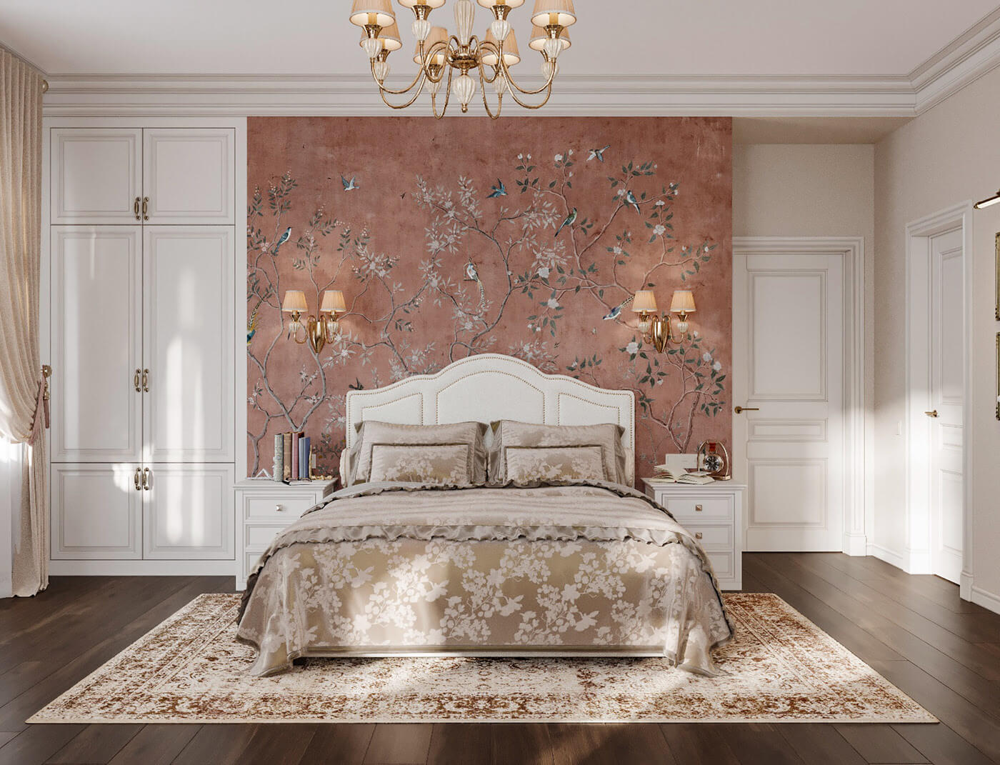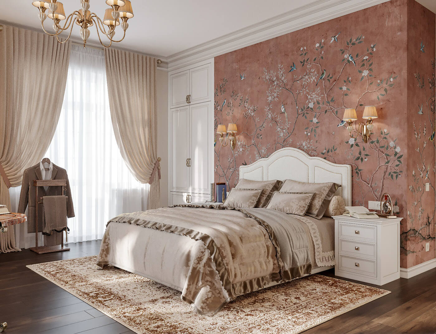 Là một người yêu sự lãng mạn, thích sự tinh tế thì mẫu phòng ngủ của thiết kế biệt thự vườn này chắc chắn sẽ làm bạn say đắm. Căn phòng được thiết kế phong cách tân cổ điển nhẹ nhàng, màu trắng tinh khôi điểm thêm chút sắc hồng cam vô cùng nổi bật.
