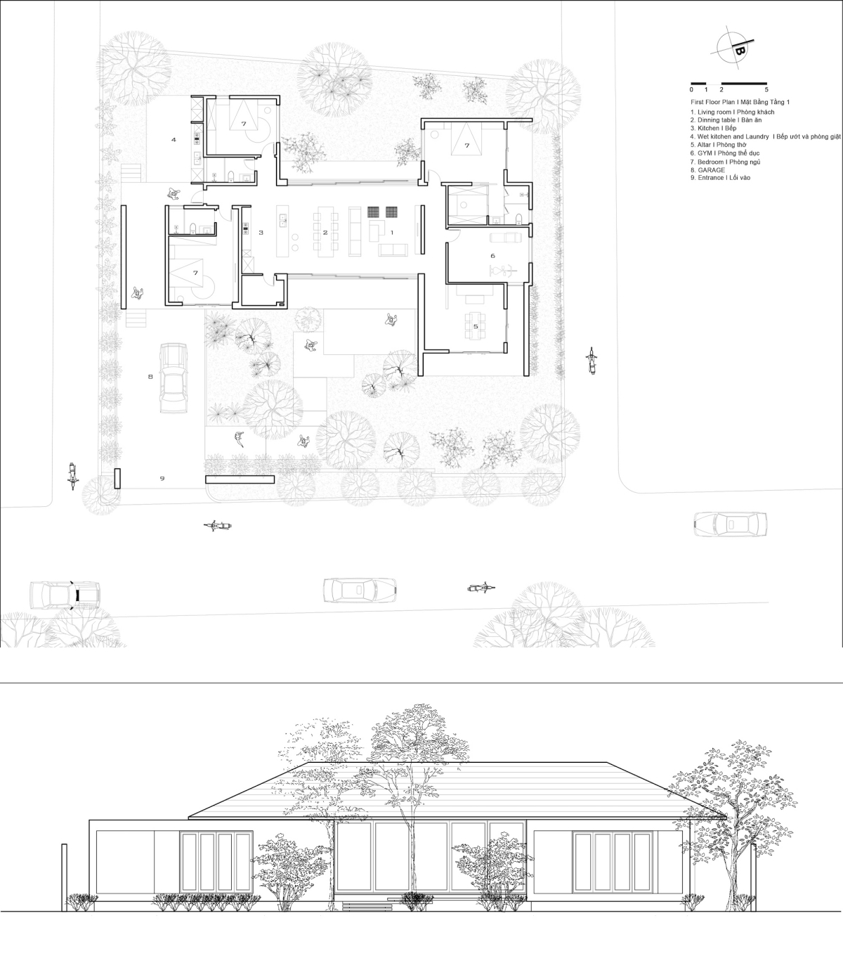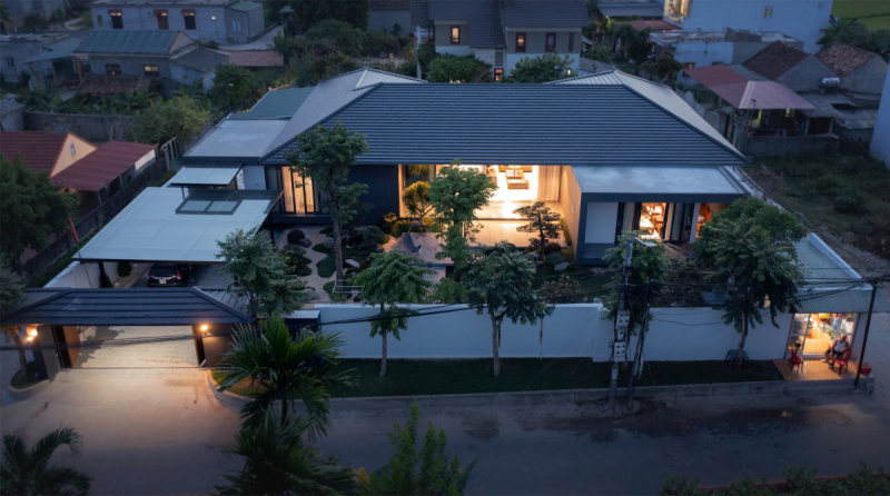 Biệt thự không chỉ hướng đến kết nối với thiên nhiên mà còn cả con người. Với quy mô 1 tầng, ngôi nhà đã tạo sự liên kết giữa các thành viên trong gia đình.