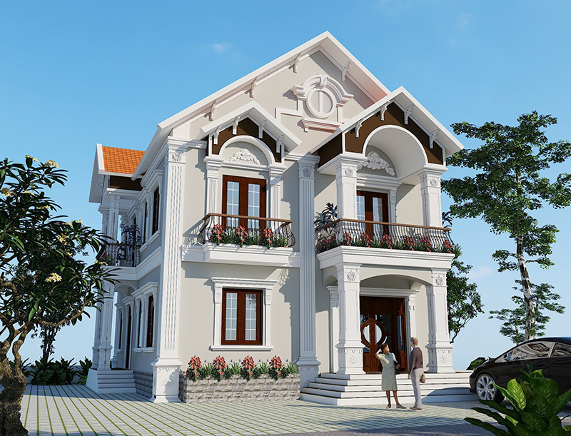 1.1 Xây biệt thự tân cổ điển 2 tầng đơn giản
