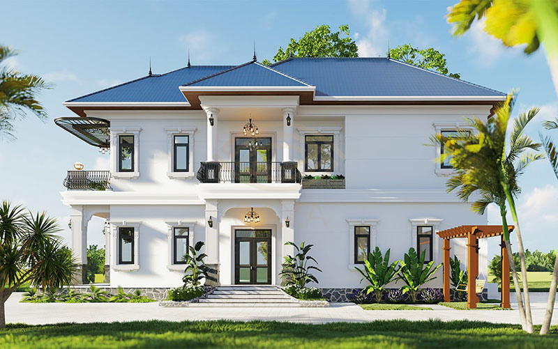 Biệt thự mái thái phong cách tân cổ điển luôn được người Việt yêu quý vì Mái Thái phù hợp với thời tiết khí hậu ở việt Nam.