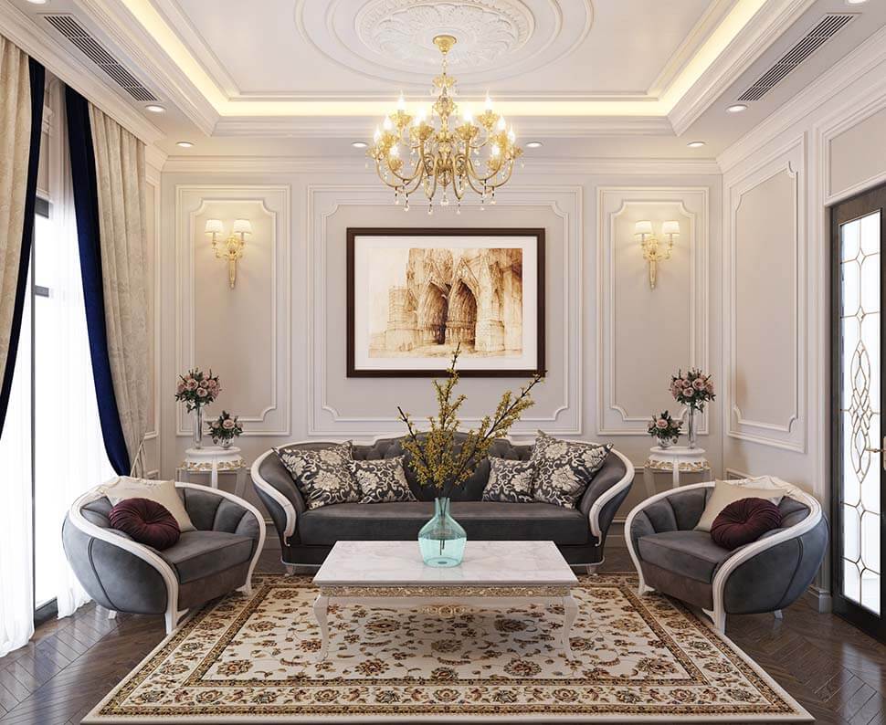 Học cách thiết kế nội thất phòng khách tân cổ điển đẹp đậm chất hoàng gia