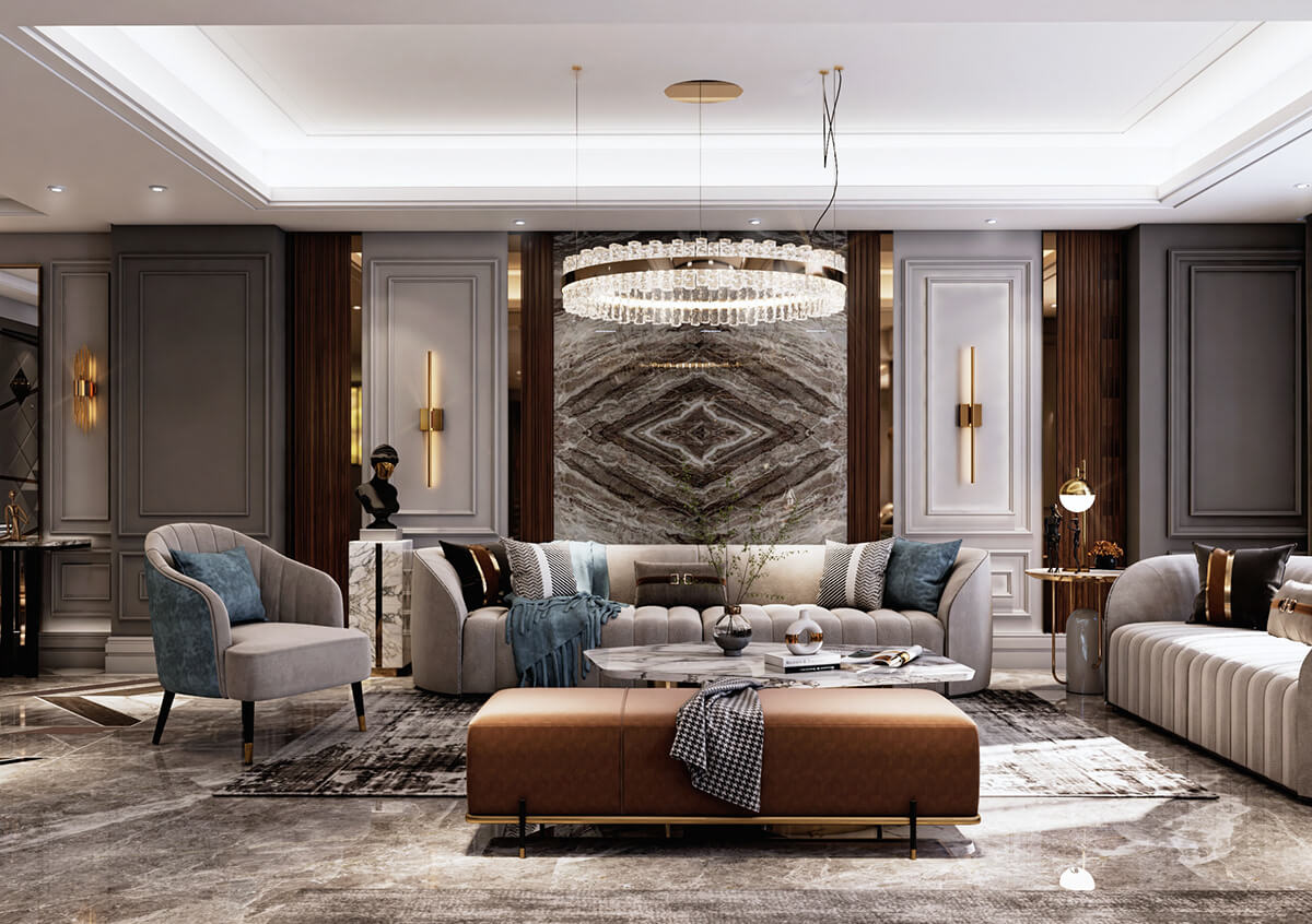 Vậy làm thế nào để thiết kế nội thất phòng khách tân cổ điển đẹp, sang trọng vạn người mê. Hãy cùng chúng tôi khám phá những nguyên tắc trong thiết kế của phong cách này nhé.