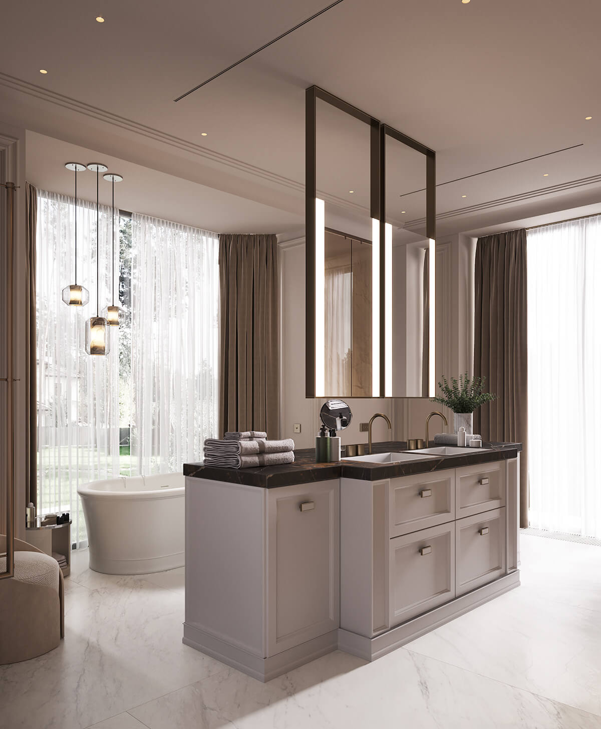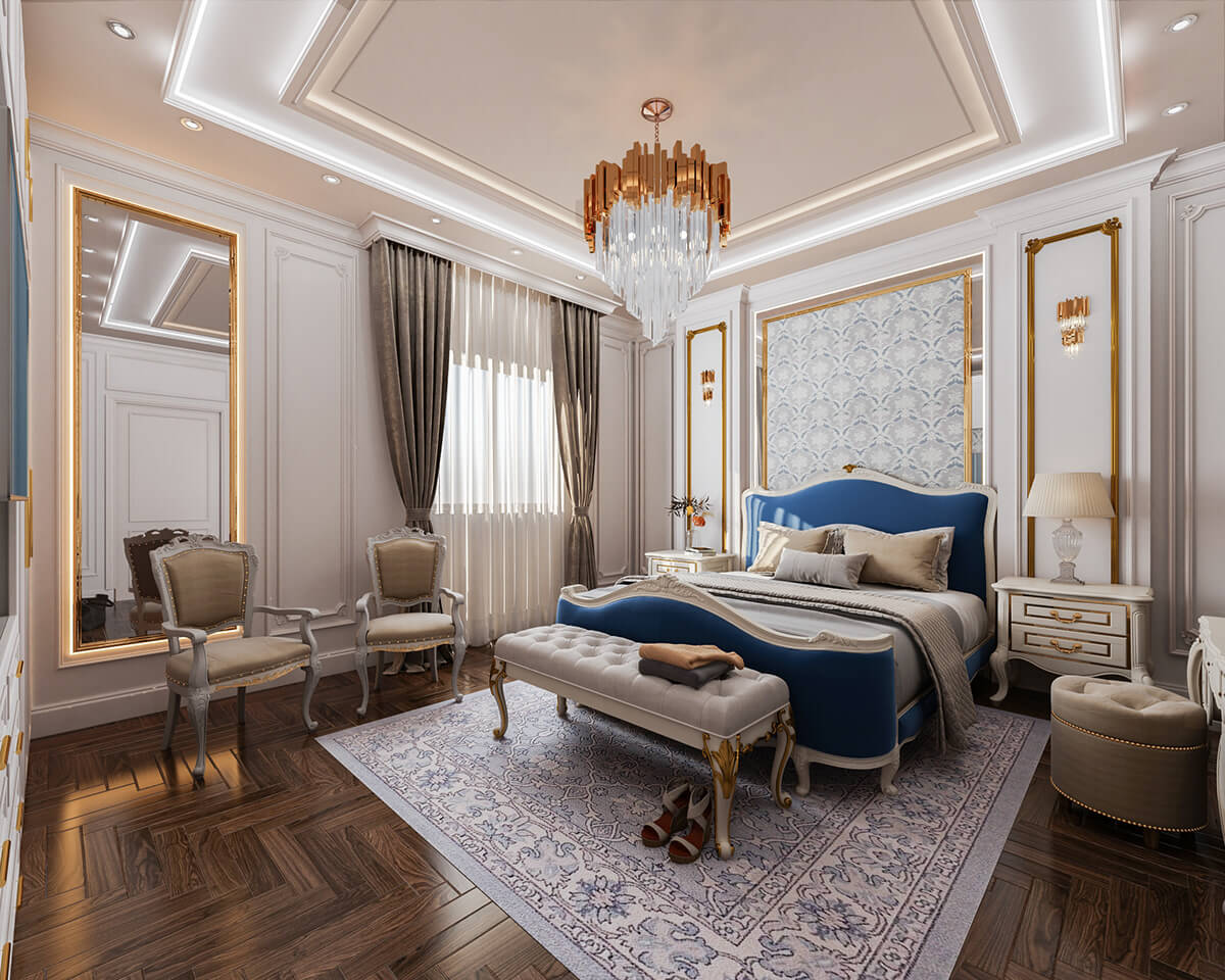 Thiết kế tân cổ điển đồi hỏi sự đồng nhất từ nội thất đến những chi tiết trang trí, các hoa văn, phào chỉ phải đậm chất nghệ thuật duy mỹ mà không quá cầu kỳ, rườm rà để tạo nên sự phóng khoáng nhưng không kém phần sang trọng đẳng cấp.