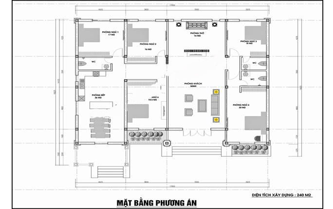 Bản vẽ mặt bằng biệt thự 1 tầng 5 phòng ngủ