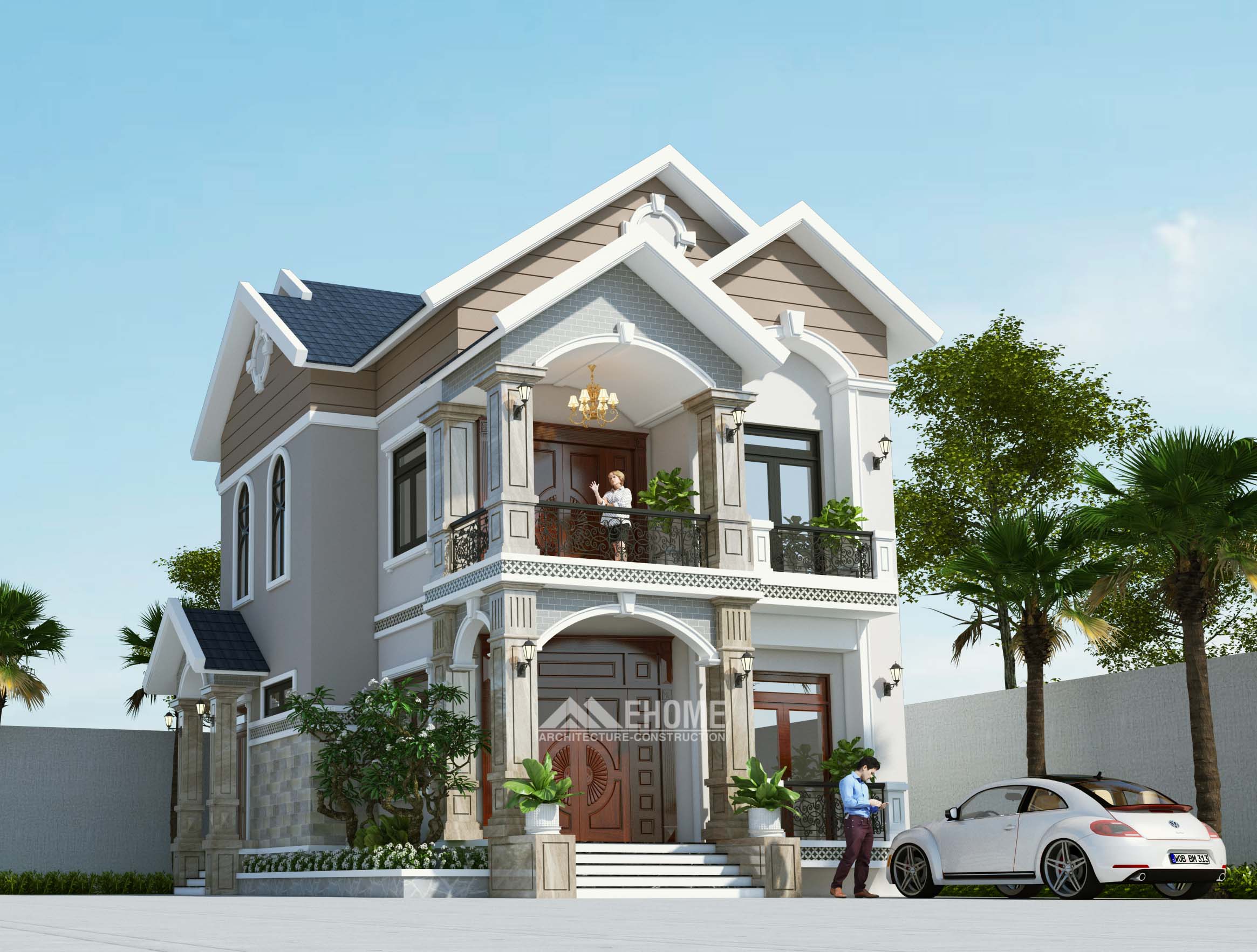 #-Biệt thự 2 tầng được Thiết kế với Tông màu Beige (BE) đẹp hiện đại.