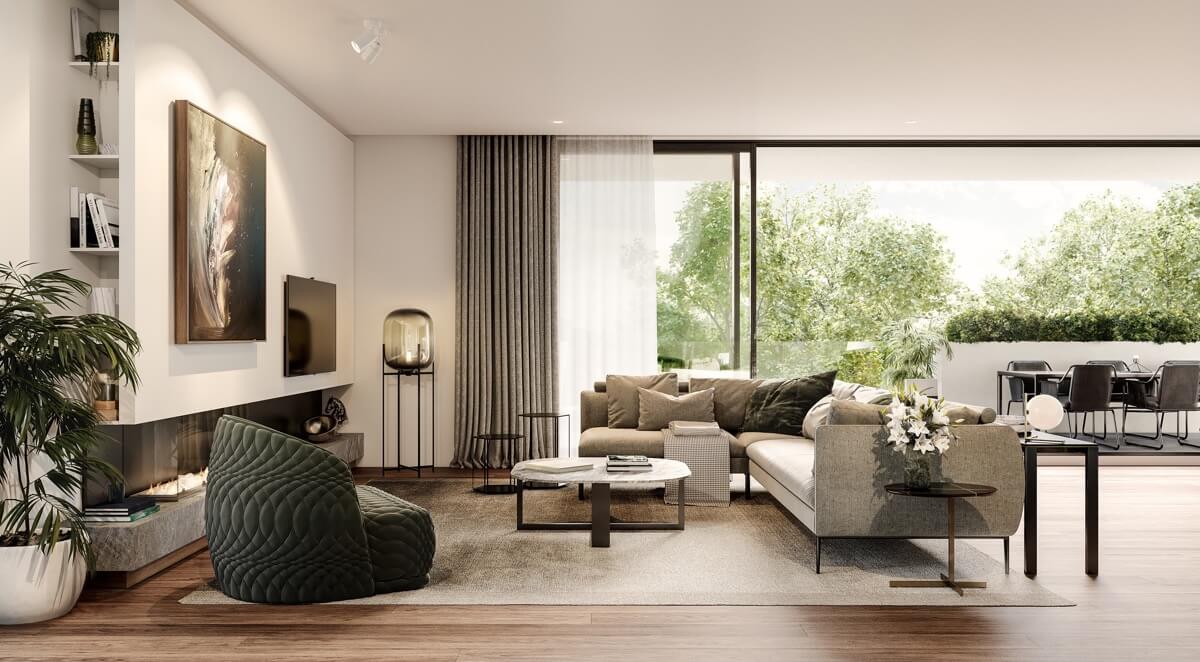 Yếu tố thiên nhiên như ánh sáng hoặc cây xanh sẽ là một bí quyết giúp thiết kế nội thất phòng khách hiện đại sang đẹp, đúng kiểu “chữa lành” tốt nhất.