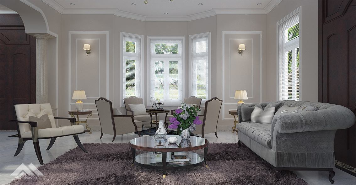 phào chỉ Hàn Quốc, đồ nội thất thiết kế theo tông sẹt tông Stile Newclassic.