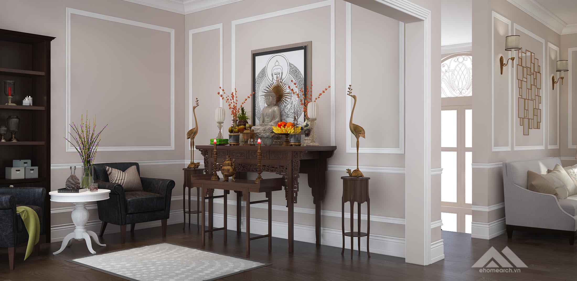 Công năng gồm: 1 phòng khách, 1 phòng ăn, 1 phòng Bếp, 1 phòng Sinh Hoạt Chung, 1 Phòng Thờ Và 4 phòng ngủ