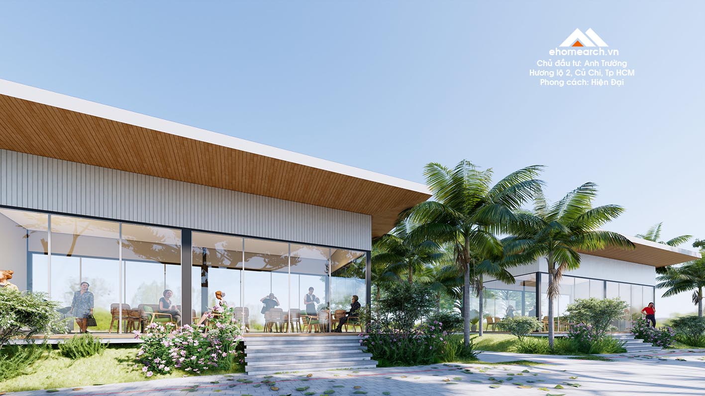 BIỆT THỰ NHÀ VƯỜN Chủ Đầu Tư: A Huy Địa điểm: Huyện Mỏ Cày Nam, Tỉnh Bến Tre Qui mô: Biệt Thự Nhà Vườn 1 tầng ,3 phòng ngủ, hồ bơi, nhà khách Phong cách: Ngôi nhà mang phong cách Tân Cổ Điển