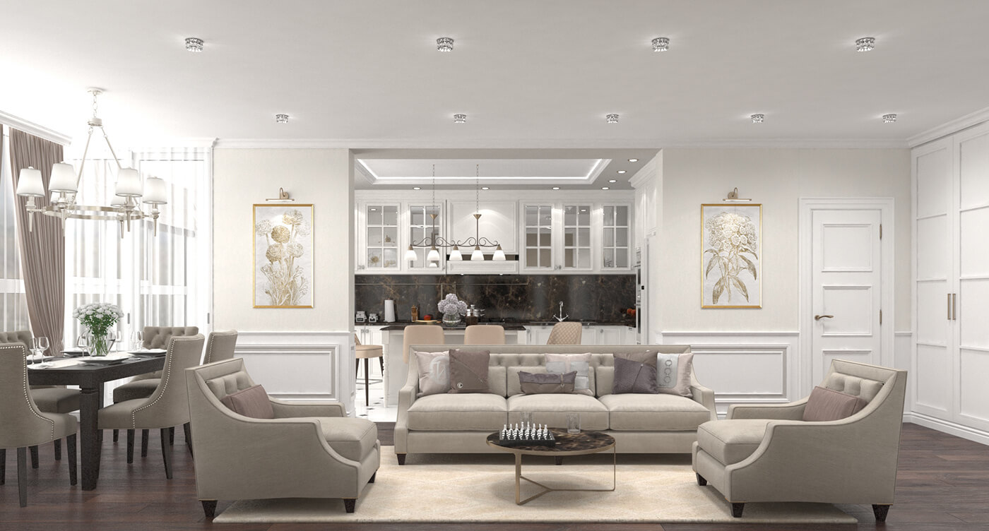 Không gian sinh hoạt chung thiết kế nội thất chung cư tân cổ điển