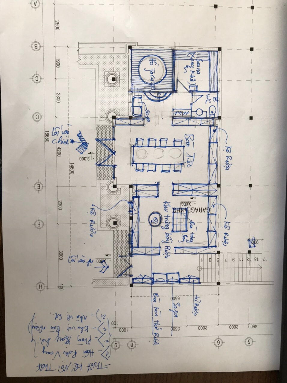 A Nam là Người Kinh Doanh trong lãnh vực đồ gỗ xuất khẩu, vì có đối tác là người nước ngoài lại thích sưu tầm rượu Vang khi đi công tác các nước, khi Cty thiết kế theo hợp đồng a đưa ra chỉ lưu ý công năng về Hầm rượu Vang ở Tầng bán hầm, nơi a tiếp khách, xong hơi (Sauna), phục hồi thể lực bằng hồ lạnh zacuji, nơi lưu trữ Rượu Vang.