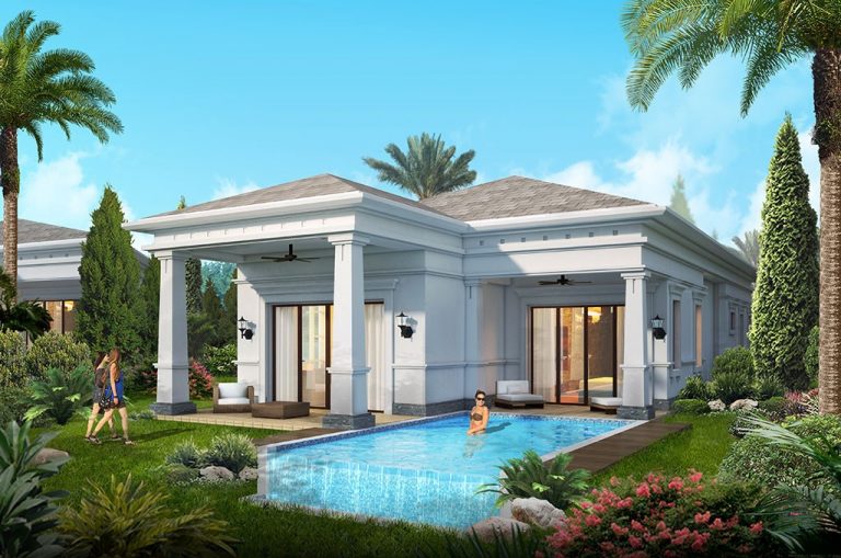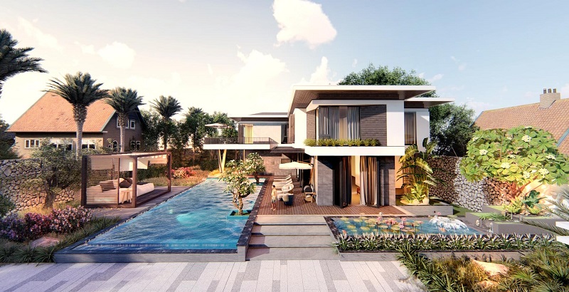 Biệt thự 2 tầng có hồ bơi với phong cách hiện đại sang trọng khai mở một không gian sống gần gũi thiên nhiên.