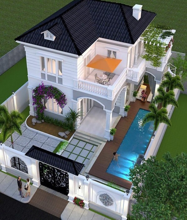 Không tốn quá nhiều tiền để xây biệt thự, mà các gia chủ hiện nay khi xây dựng nhà xu hướng chừa nhiều diện tích để xây dựng "tiện ích" như hồ bơi, sân vườn... hướng đến một lối sống "Wellness" hơn nhiều. Cũng vì thế những mẫu biệt thự mini 2 tầng có hồ bơi luôn là mẫu nhà được yêu thích.