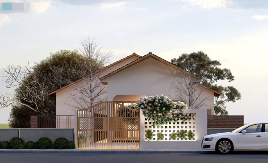Biệt thự nhà vườn cấp 4 nông thôn phong cách hiện đại với cổng tường rào được thiết kế chỉn chu sang trọng