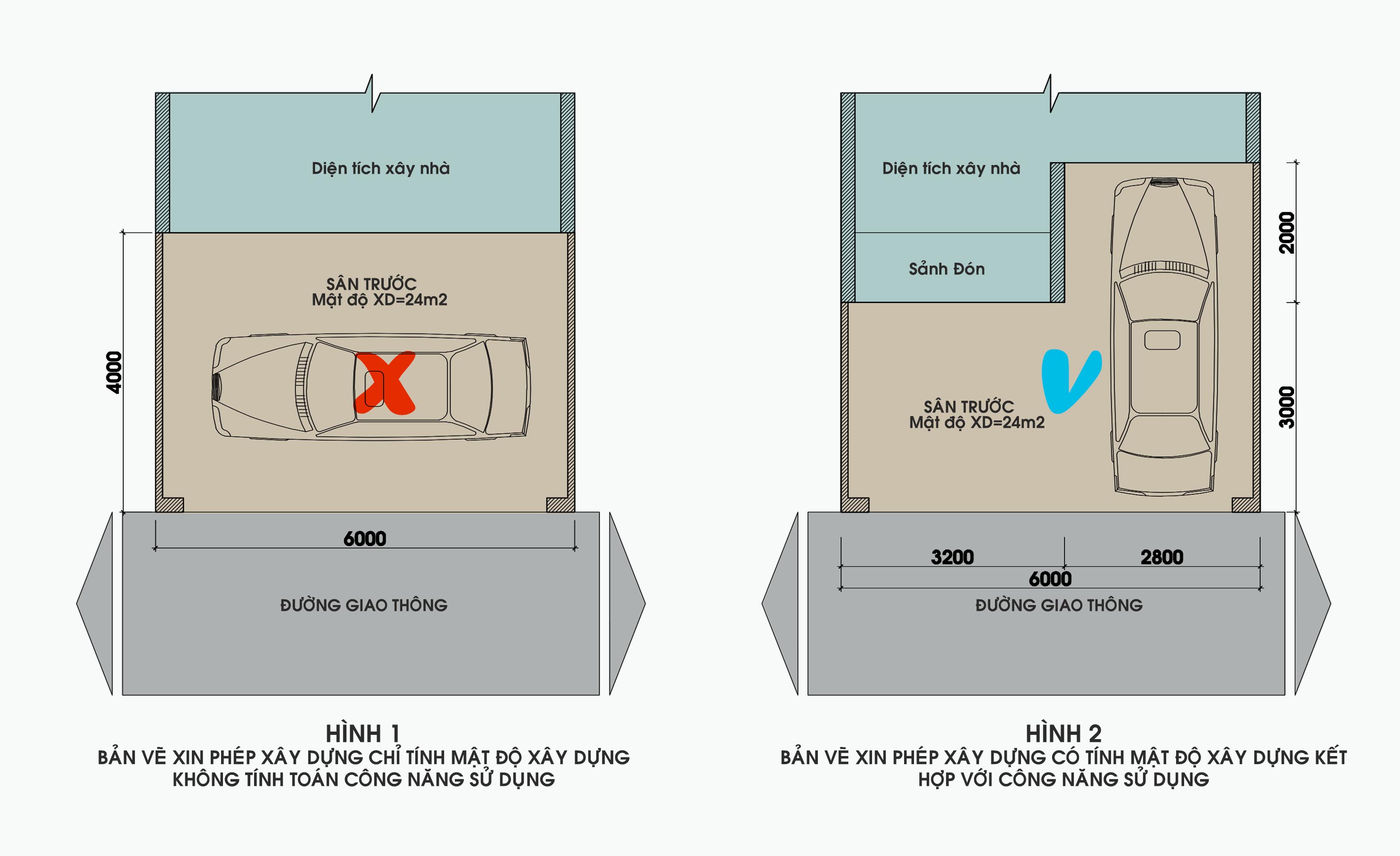 Hình 1: khi có nhu cầu đậu xe Ô tô trông nhà, Ranh xây dựng chỉ lùi vào 4m không đê dc Garager xe hơi.