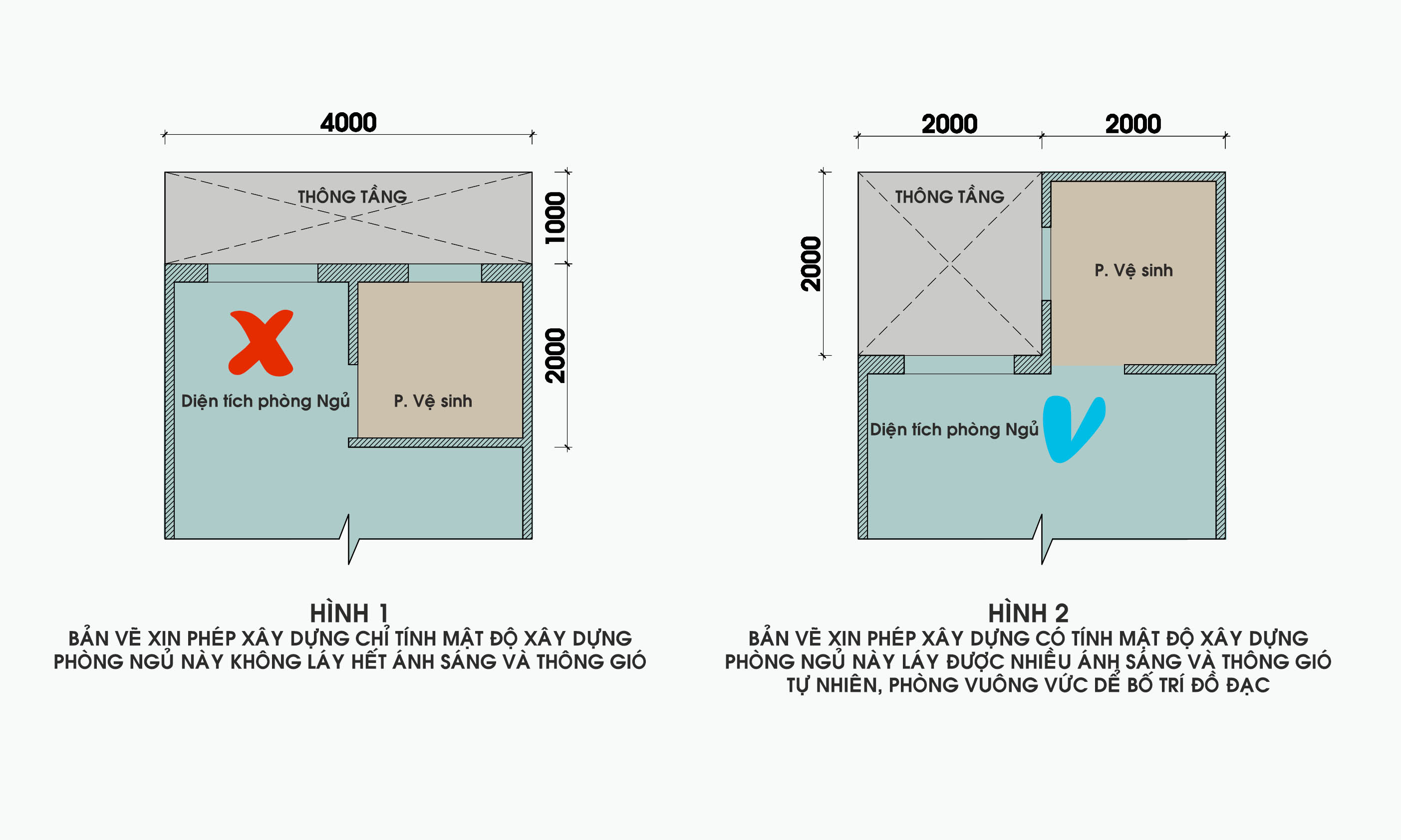 Trường hợp 2- Chừa MĐXD chưa hợp lí ảnh hưởng đến Công năng sử Dụng của Căn nhà.