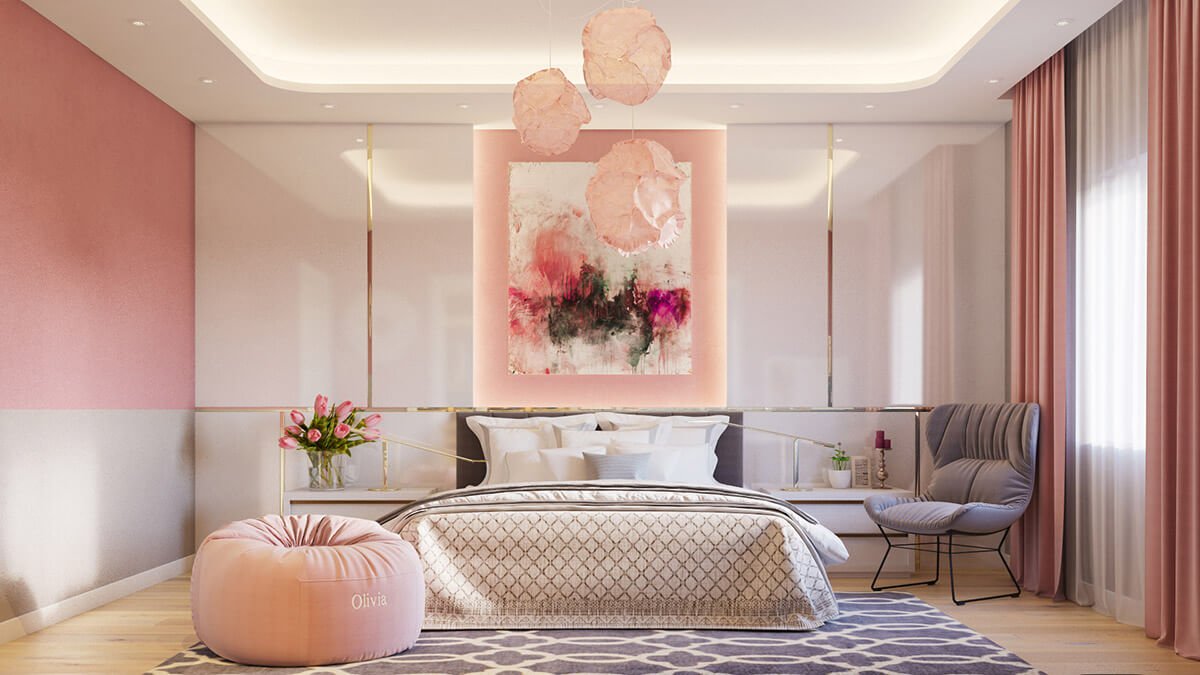 Để thiết kế nội thất phòng ngủ vợ chồng lãng mạn, bạn có thể sử dụng gam màu pastel như hồng, xanh nhẹ hoặc tím… lựa chọn tone màu sắc mà mình yêu thích để trang trí cho phòng ngủ vừa đẹp, lãng mạn vừa phù hợp với sở thích.
