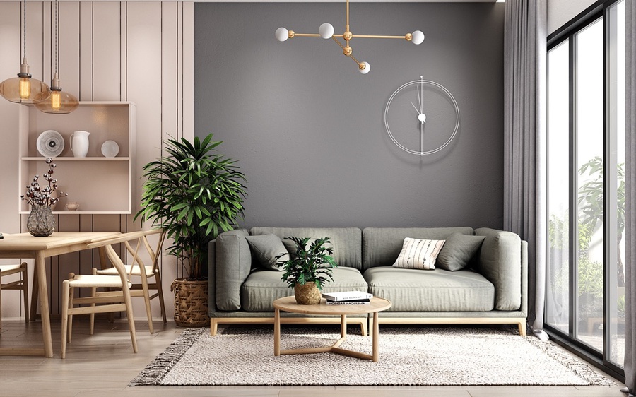 Ví dụ nếu như phòng khách bạn màu trắng làm chủ đạo bạn có thể chọn một điểm nhấn màu sắc bức tường ở đằng sau ghế sofa. Gam màu nổi bật giúp căn phòng trở nên sinh động hơn. Tuy nhiên cần lưu ý không nên kết hợp quá nhiều màu sắc làm căn phòng trở nên rối rắm hơn.